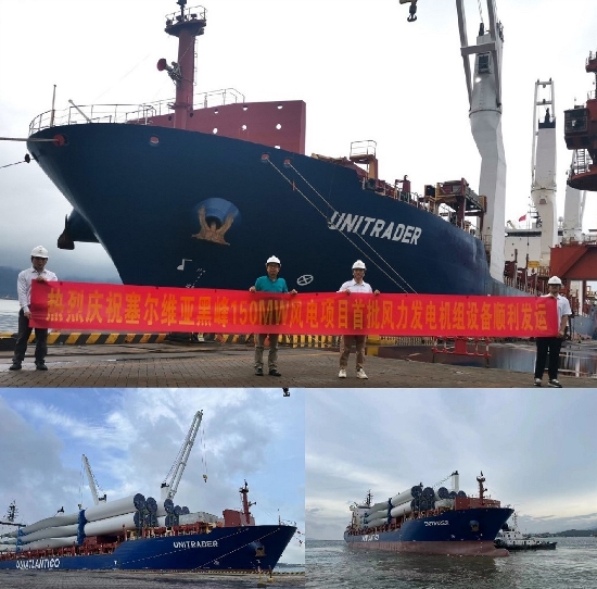 ? ? ? 近期,塞爾維亞150MW黑峰風電項目首批風力發(fā)電機組成功裝船起運。